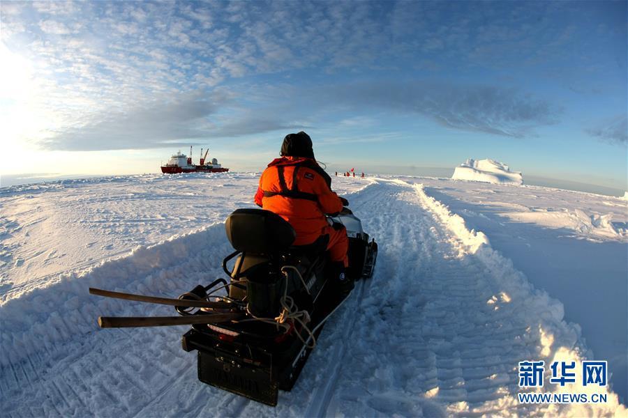 冰上運(yùn)輸之路最后一公里修通,修路小組成員返回“雪龍”號(12月1日攝)。 搭載中國第35次南極科考隊(duì)的“雪龍”號極地考察船日前到達(dá)距離中山站44公里處的陸緣冰區(qū),準(zhǔn)備迎來本次南極科考首場攻堅戰(zhàn)——物資卸運(yùn)。一支探冰小組隨即展開海冰探路,以期盡快打通從“雪龍”號到中山站的冰上運(yùn)輸線,盡早啟動冰上運(yùn)貨。 新華社記者 劉詩平 攝