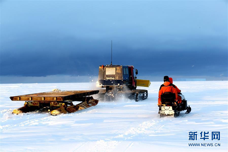 修路小組成員用雪地車裝備的鏟斗推平積雪(12月1日攝)。 搭載中國第35次南極科考隊(duì)的“雪龍”號極地考察船日前到達(dá)距離中山站44公里處的陸緣冰區(qū),準(zhǔn)備迎來本次南極科考首場攻堅戰(zhàn)——物資卸運(yùn)。一支探冰小組隨即展開海冰探路,以期盡快打通從“雪龍”號到中山站的冰上運(yùn)輸線,盡早啟動冰上運(yùn)貨。 新華社記者 劉詩平 攝
