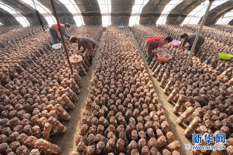 12月20日,唐山市豐潤(rùn)區(qū)小美食用菌種植農(nóng)民專業(yè)合作社社員在大棚內(nèi)采摘香菇。 新華社記者 牟宇攝