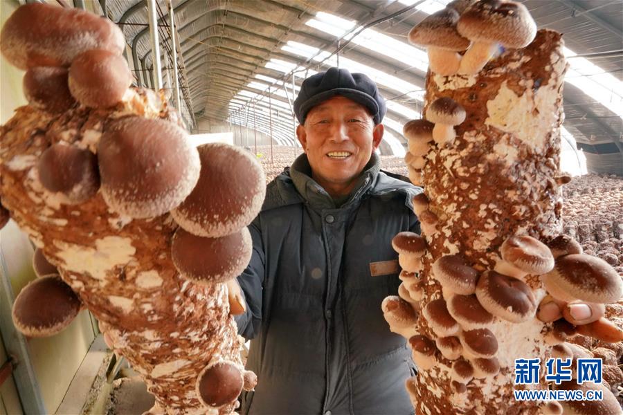 12月20日,唐山市豐潤(rùn)區(qū)小美食用菌種植農(nóng)民專業(yè)合作社社員在展示種植的香菇。 新華社記者 牟宇攝