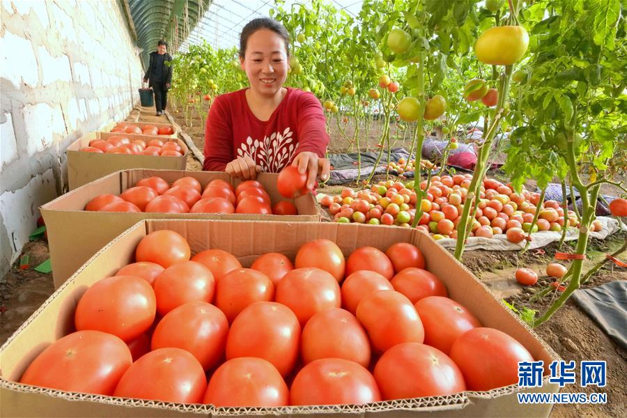 12月20日,唐山市豐潤(rùn)區(qū)百草坡農(nóng)產(chǎn)品農(nóng)民專業(yè)合作社社員在大棚內(nèi)收獲西紅柿。 新華社記者 牟宇攝