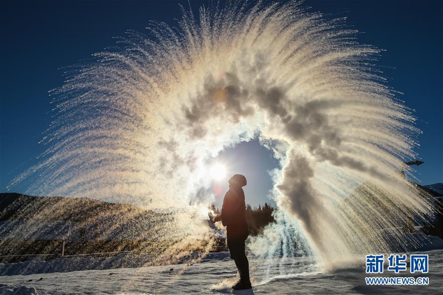 1月22日,在新疆阿勒泰地區(qū)布爾津縣禾木村,來(lái)自烏魯木齊的游客體驗(yàn)“潑水成冰”。 在即將過去的2018年,各地?cái)z影師用鏡頭記錄下四季中國(guó)。大江南北,一幅幅色彩斑斕的美麗畫卷徐徐展開。 新華社記者李京攝