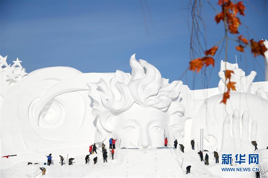 12月24日,雪雕師在制作太陽(yáng)島雪博會(huì)主塑“星河之旅”。 當(dāng)日,哈爾濱太陽(yáng)島雪博會(huì)主塑露出“芳容”。本屆雪博會(huì)主塑“星河之旅”長(zhǎng)106米,高32米,寬20米,用雪量達(dá)4萬(wàn)立方米。 新華社記者 王建威 攝