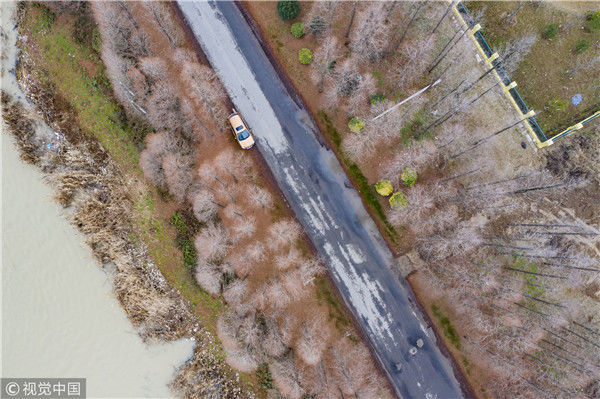 2018年12月27日,江蘇淮安,航拍京杭大運(yùn)河淮安段冬日景色。吳揚(yáng)/視覺中國