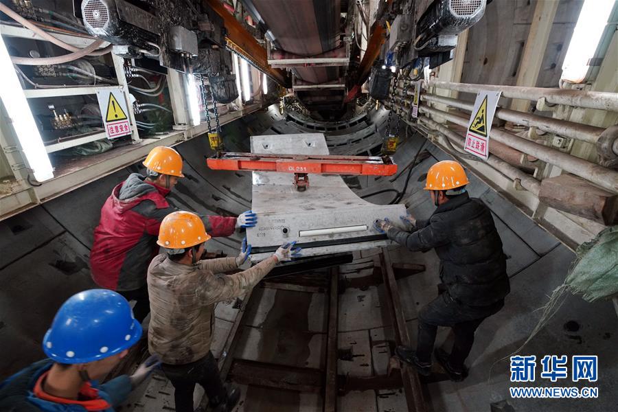 12月30日,南昌地鐵四號(hào)線西禮區(qū)間項(xiàng)目工地上,中鐵上海工程局集團(tuán)有限公司的職工在進(jìn)行施工。新華社記者宋振平攝