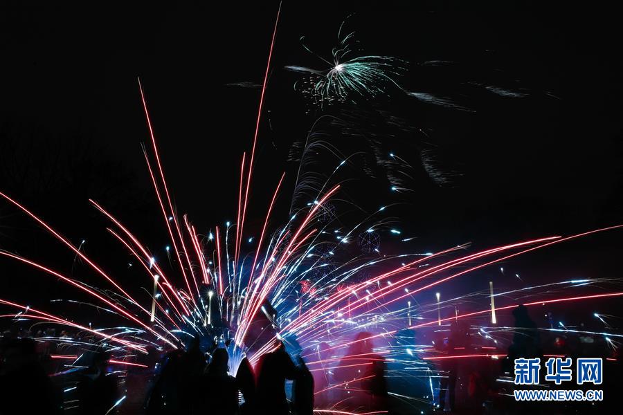 1月1日,在俄羅斯首都莫斯科,人們參加迎新年活動(dòng)。 新華社記者白雪騏攝