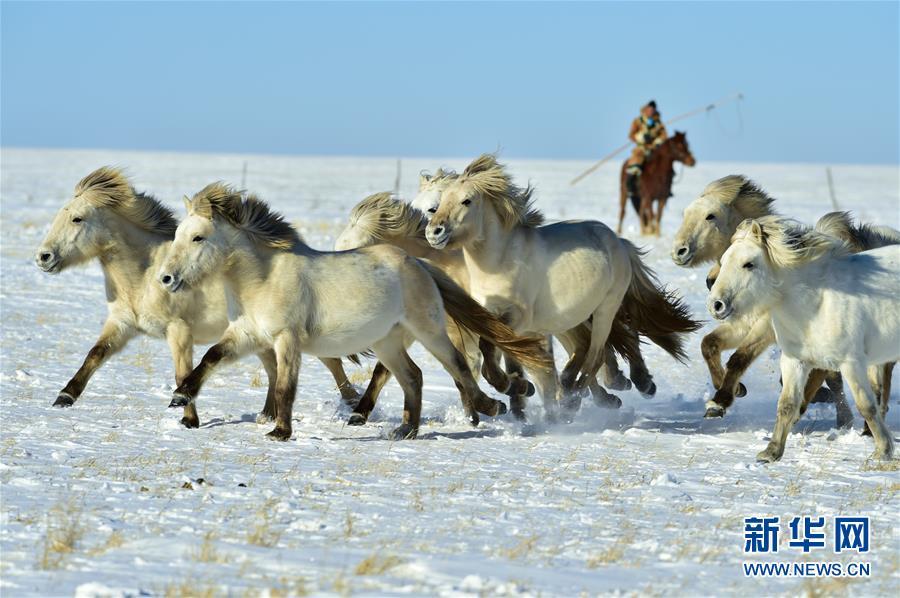 1月8日,牧民表演馬背拾哈達。 時下正值草原冬季旅游旺季,內(nèi)蒙古自治區(qū)西烏珠穆沁旗的牧民們在雪原上一展身手,為游客展現(xiàn)獨特的民族風(fēng)情。 新華社記者 鄒予 攝
