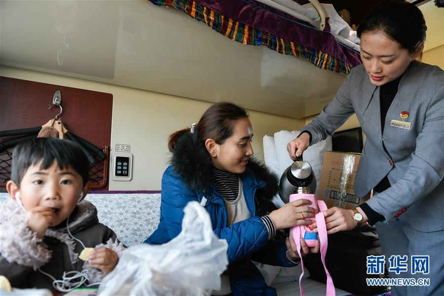 春運臨近,西藏鐵路客流逐漸增大。從拉薩發(fā)往西寧的中國鐵路青藏集團公司西寧客運段Z6802次旅客列車滿載著游客、務(wù)工人員、學(xué)生、朝佛信眾等,穿梭在白雪皚皚的高原上。