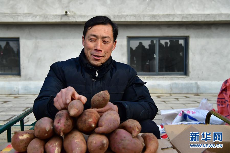 1月13日,村民在展銷活動(dòng)上售賣紅薯。 新華社記者 馮大鵬 攝