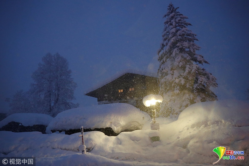 奧地利暴風(fēng)雪持續(xù) 公交車(chē)站被積雪掩埋
