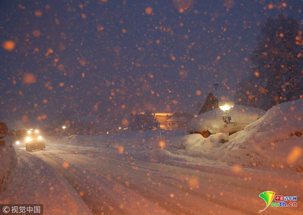 奧地利暴風(fēng)雪持續(xù) 公交車站被積雪掩埋