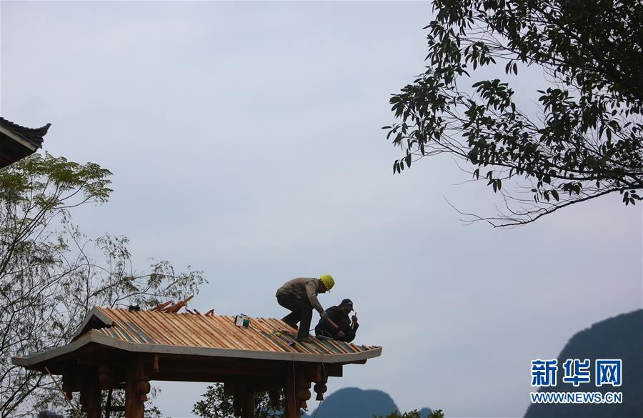 1月15日,工人在廣西融水苗族自治縣融水鎮(zhèn)夢(mèng)嗚苗寨建設(shè)房屋。新華社記者 陳君清 攝