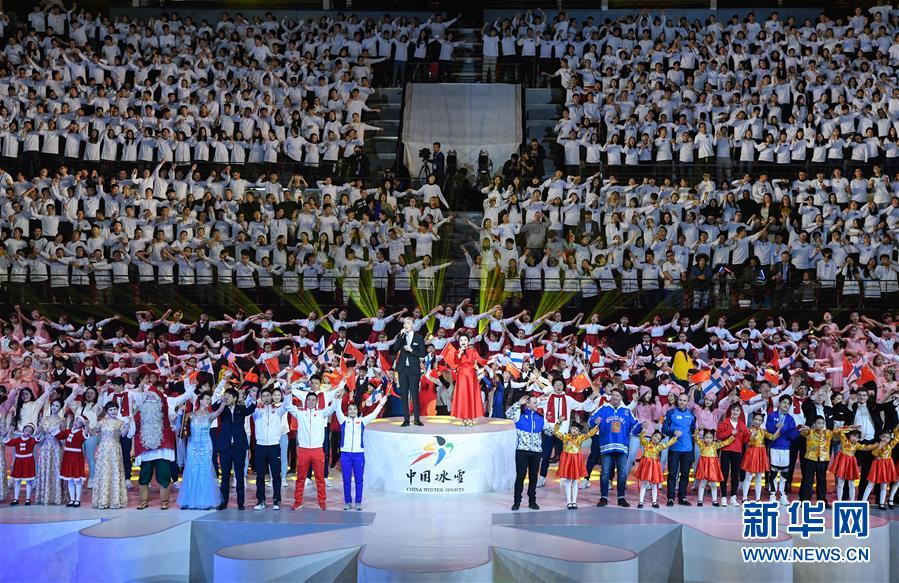 1月15日,演員在開(kāi)幕式上表演。 當(dāng)日,“2019中芬冬季運(yùn)動(dòng)年”開(kāi)幕式在北京首鋼冰球館舉行。 新華社記者申宏攝