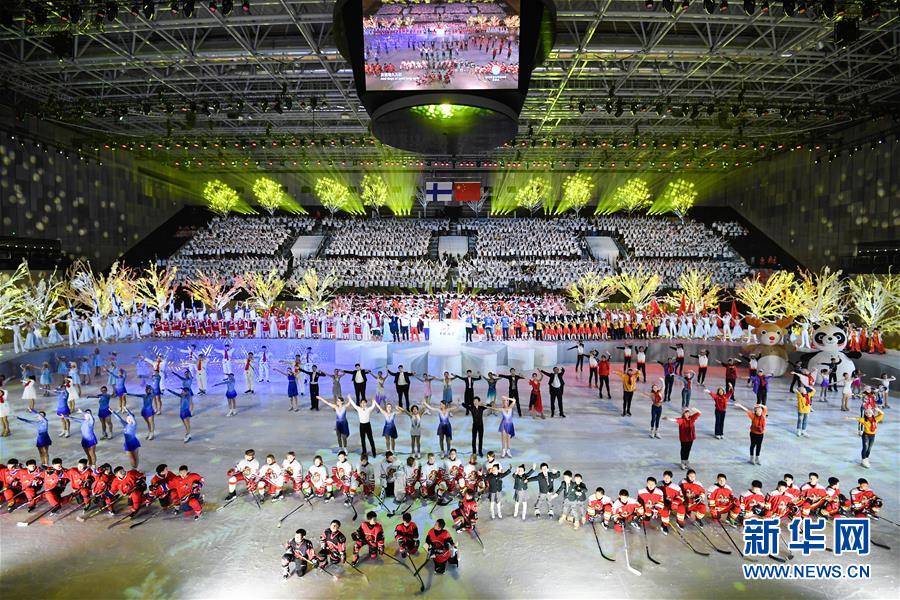 1月15日,演員在開幕式上表演。 當(dāng)日,“2019中芬冬季運(yùn)動(dòng)年”開幕式在北京首鋼冰球館舉行。 新華社記者申宏攝