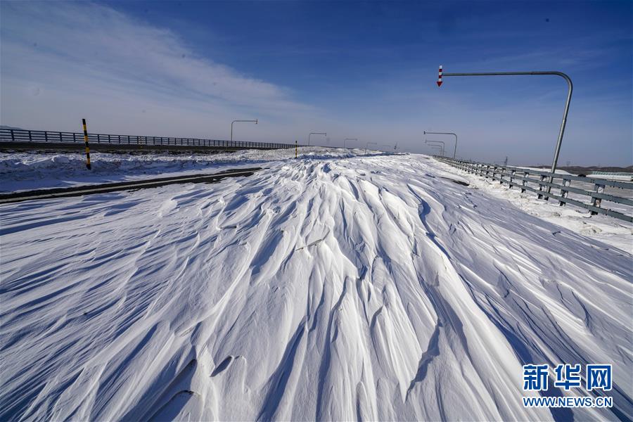 1月15日,在新疆瑪依塔斯風(fēng)區(qū)內(nèi),大風(fēng)將白雪吹到公路上。 瑪依塔斯風(fēng)區(qū)位于新疆西北部額敏縣境內(nèi)。這里東西風(fēng)交替頻繁,一年大風(fēng)天數(shù)超過150天,是世界上罕見的暴風(fēng)雪災(zāi)害地段。駐守在這里的新疆塔城公路管理局額敏分局瑪依塔斯應(yīng)急保障基地,近年來連續(xù)裝備拋雪機(jī)等冰雪搶險救災(zāi)裝備,有力地保障了這條道路的交通安全。 新華社記者趙戈攝