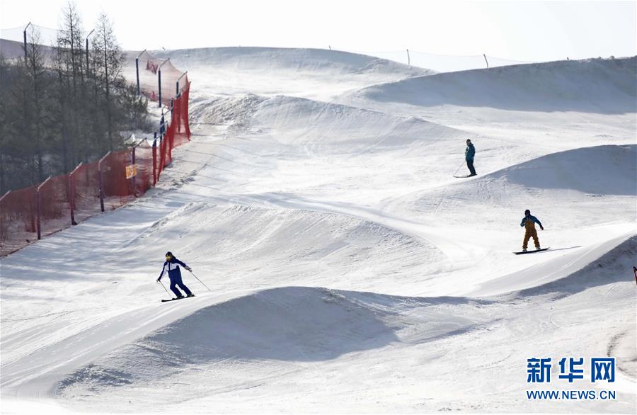 1月15日,滑雪愛(ài)好者在張家口市崇禮區(qū)萬(wàn)龍滑雪場(chǎng)滑雪。 新華社記者楊世堯攝