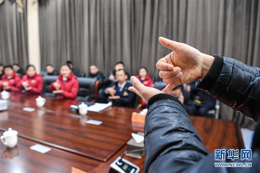 1月16日,中國鐵路上海局集團有限公司蘇州站職工在老師的指導下學習手語“乘”。 當日,中國鐵路上海局集團有限公司蘇州站聯合蘇州市盲聾學校共同舉辦“傳手語、共融合”春運志愿服務技能培訓活動,來自蘇州站的30余名職工代表在活動中了解、學習基礎手語技能,為即將到來的春運做準備。 新華社記者李博攝