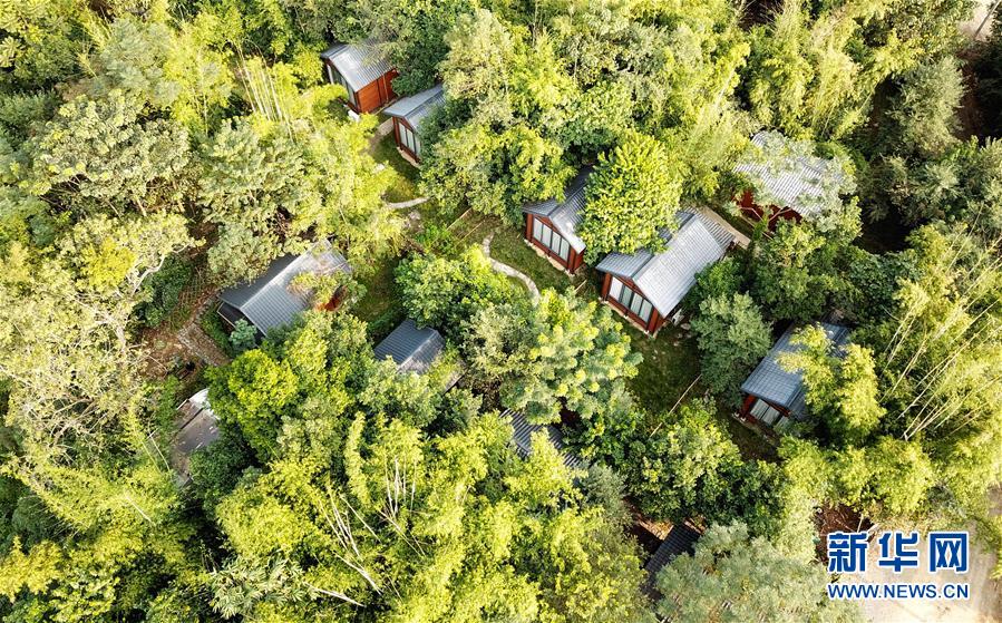 廣東清遠(yuǎn)英德市九龍鎮(zhèn)活石水村的鄉(xiāng)村民宿(2018年11月14日無人機(jī)拍攝)。