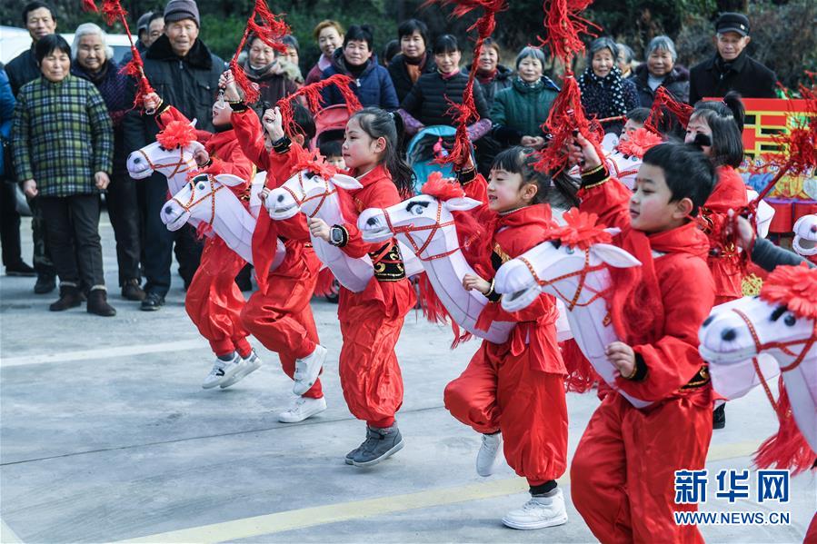 1月16日,孩子們?yōu)樾绿链宕迕癖硌輦鹘y(tǒng)非遺項目——下箬馬燈。下箬馬燈是發(fā)源于長興縣的民間舞蹈,距今已有1000多年歷史。 臨近春節(jié),浙江省長興縣開發(fā)區(qū)中心幼兒園的老師和孩子們來到長興縣太湖街道下屬的新塘村,為村民表演文藝節(jié)目,用喜慶的傳統(tǒng)舞蹈營造節(jié)日氣氛。另外孩子們還用紙盒、瓶子、彩色包裝紙等廢舊物品制作了環(huán)保花燈,送給村民,倡導(dǎo)低碳環(huán)保的節(jié)日新風(fēng)。 新華社記者 徐昱 攝