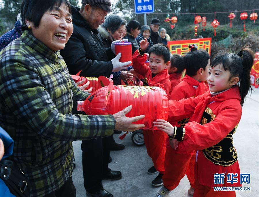 1月16日,孩子們把用廢舊物品制作的節(jié)日花燈送給村民。 臨近春節(jié),浙江省長興縣開發(fā)區(qū)中心幼兒園的老師和孩子們來到長興縣太湖街道下屬的新塘村,為村民表演文藝節(jié)目,用喜慶的傳統(tǒng)舞蹈營造節(jié)日氣氛。另外孩子們還用紙盒、瓶子、彩色包裝紙等廢舊物品制作了環(huán)?;?,送給村民,倡導(dǎo)低碳環(huán)保的節(jié)日新風(fēng)。 新華社記者 徐昱 攝