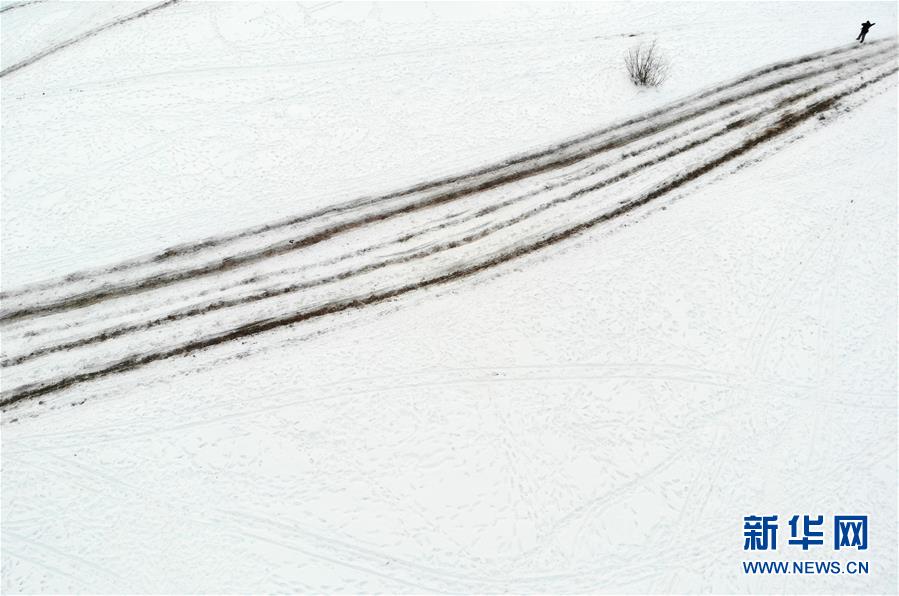 1月24日,在黑龍江省漠河市北極村,馬爬犁在雪地上留下一道道痕跡(無人機(jī)拍攝)。新華社記者 才揚(yáng) 攝