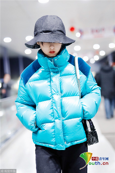 2019年1月31日,上海,張子楓現(xiàn)身機場。她身穿藍色羽絨服,戴著大檐帽也難擋好氣色,雪膚紅唇妝容精致展現(xiàn)女人味。