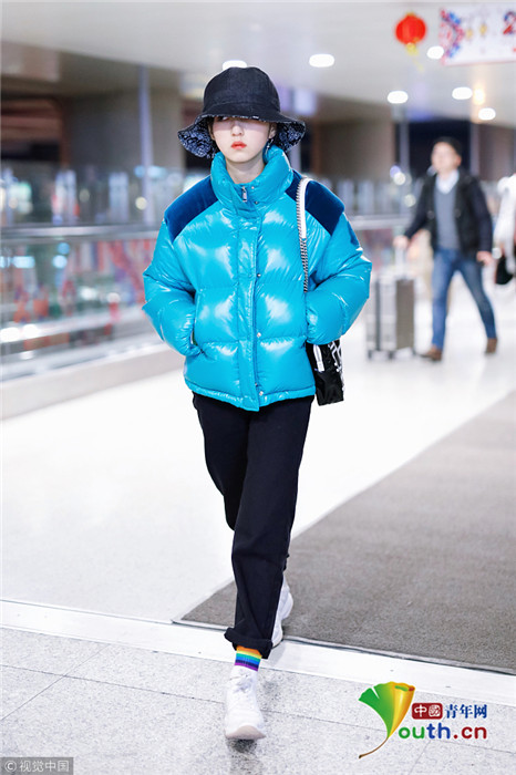 2019年1月31日,上海,張子楓現(xiàn)身機(jī)場。她身穿藍(lán)色羽絨服,戴著大檐帽也難擋好氣色,雪膚紅唇妝容精致展現(xiàn)女人味。