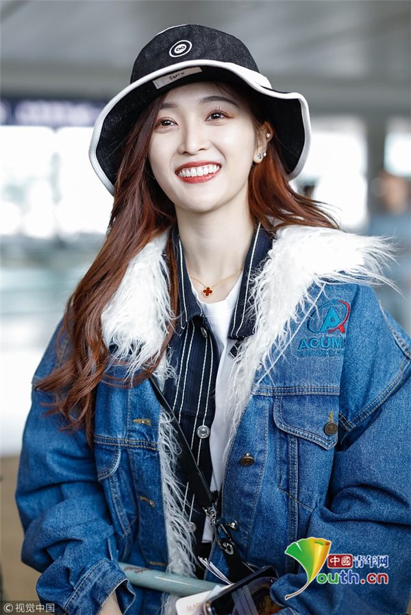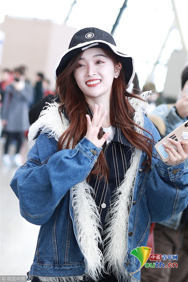 2月2日,上海,吳宣儀頭戴帽子身穿一襲牛仔服現(xiàn)身機(jī)場(chǎng) 。她自提大包回家過年 ,獲粉絲拜年祝福 ,吐舌狂賣萌。