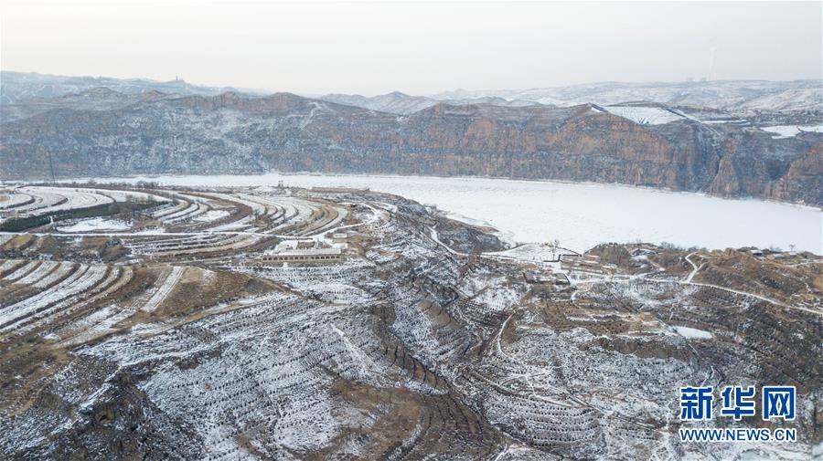 這是2月17日無(wú)人機(jī)拍攝的老牛灣雪景。黃河老牛灣位于山西省和內(nèi)蒙古自治區(qū)交界處。