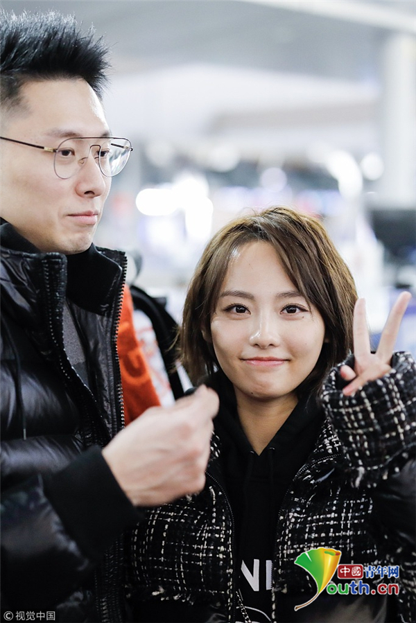 2月20日,上海,張嘉倪、買超深夜現(xiàn)身機場,啟程前往2019秋冬米蘭時裝周。張嘉倪依偎在老公懷里十分小女生,兩人對鏡頭比心狂撒狗糧,與粉絲親切合影簽名,十分接地氣。