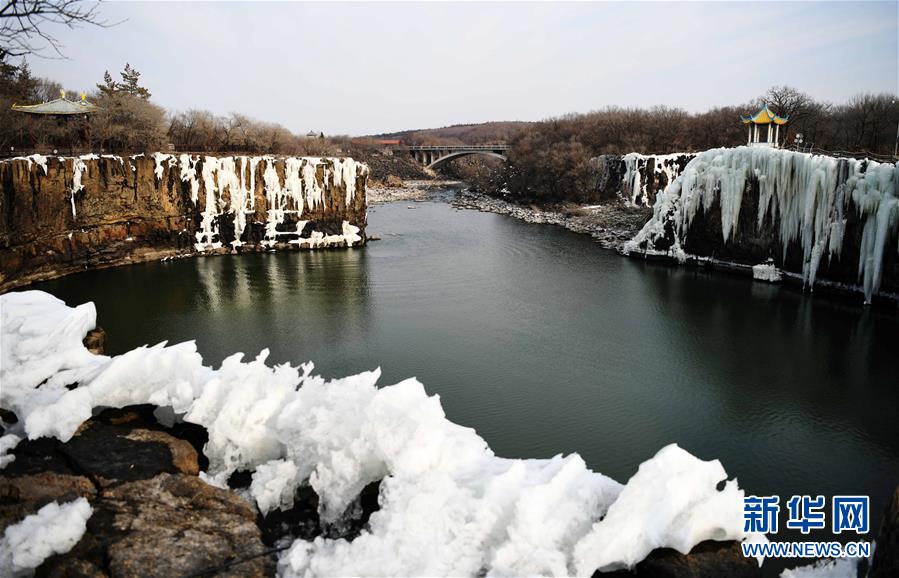 這是吊水樓瀑布的冰瀑景觀(2月24日攝)。 去冬今春以來,黑龍江省鏡泊湖的吊水樓冰瀑景色壯觀,吸引許多游人前來觀賞。 新華社記者 王建威 攝
