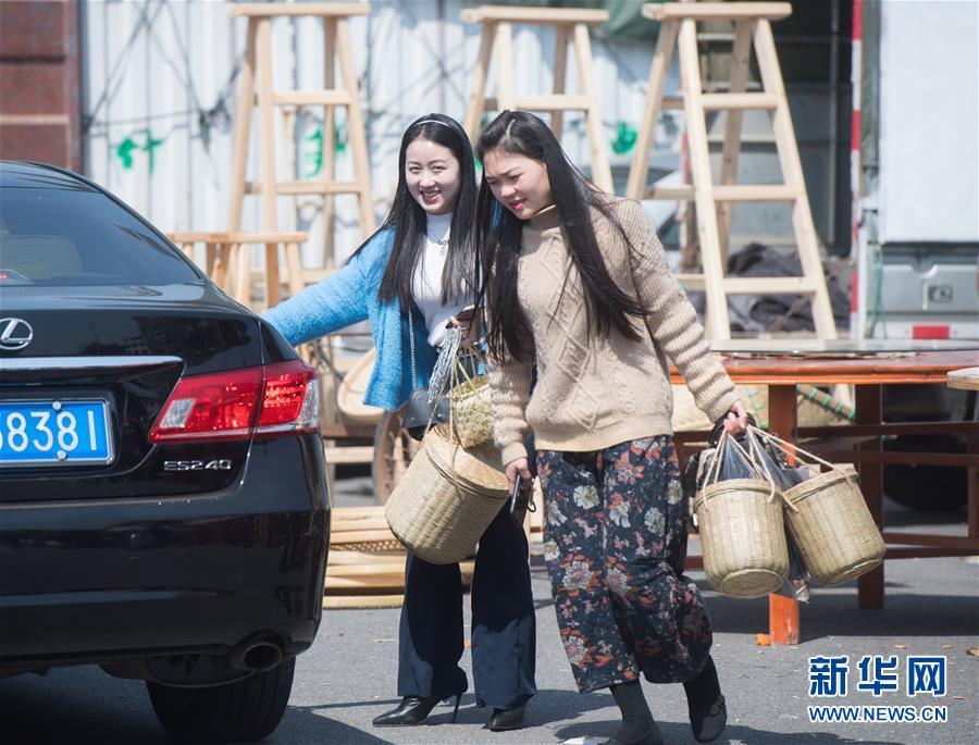3月12日,兩位女士在福建武夷山“柴頭會(huì)”上采購后準(zhǔn)備乘車離開。 新華社記者 宋為偉 攝