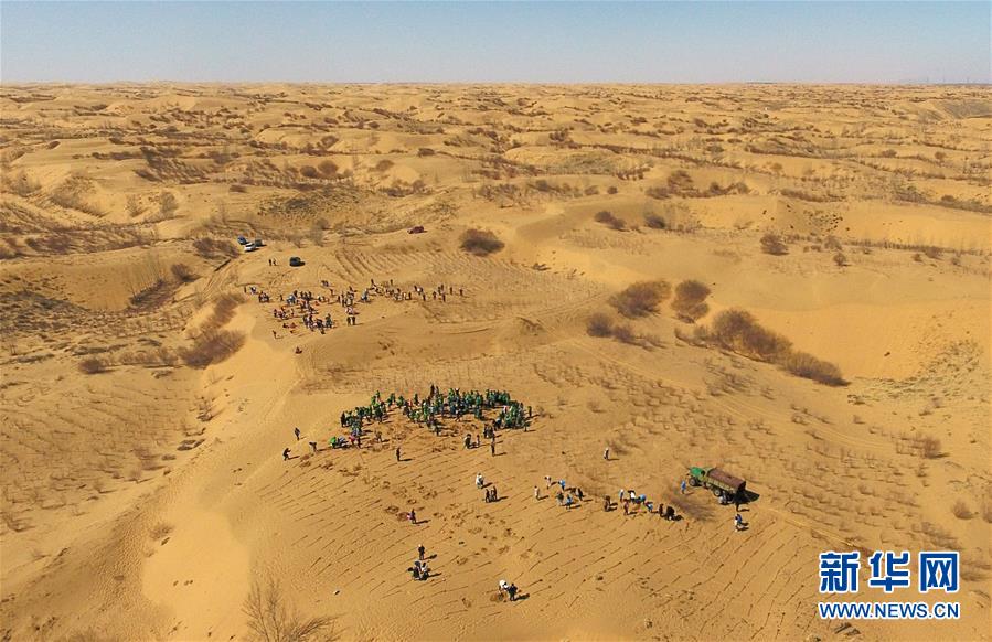 3月31日,中韓青年在內(nèi)蒙古達(dá)拉特旗庫布其沙漠中植樹(無人機(jī)拍攝)。 當(dāng)日,200余名中韓兩國青年志愿者來到內(nèi)蒙古自治區(qū)達(dá)拉特旗庫布其沙漠種樹。2006年起,中國國際青年交流中心與韓國韓中文化青少年協(xié)會(huì)組織兩國青年志愿者在庫布其沙漠植樹,參與防沙固沙項(xiàng)目。截至目前已植樹850多萬株,造林3萬多畝。 新華社記者 劉磊 攝