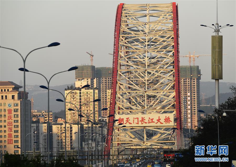 這是4月7日拍攝的重慶朝天門長江大橋一帶景象。 千里為重,廣大為慶。城在山水間、山水在城中,重慶頗具特色的立體城市景觀是城市靚麗的名片。 新華社記者 王全超 攝
