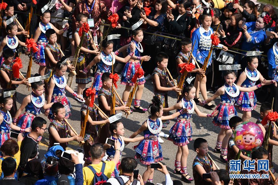4月18日,臺江縣苗族群眾參加盛裝游演活動。 當(dāng)日,貴州省黔東南苗族侗族自治州臺江縣迎來一年一度的苗族姊妹節(jié)。節(jié)日期間將舉行苗族盛裝游演、千人長桌宴、千人游方體驗(yàn)、苗族手工創(chuàng)意大賽等一系列活動。 姊妹節(jié)是臺江縣苗族同胞的傳統(tǒng)節(jié)日,2006年被列入第一批國家級非物質(zhì)文化遺產(chǎn)名錄。 新華社記者 楊文斌 攝