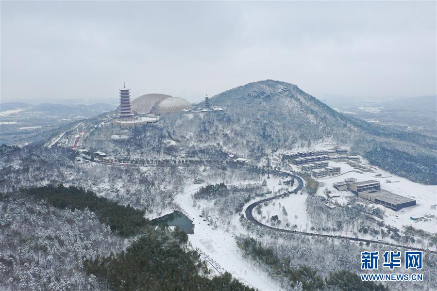 這是2月8日無(wú)人機(jī)拍攝的南京牛首山文化旅游區(qū)雪景。 新華社記者 季春鵬 攝