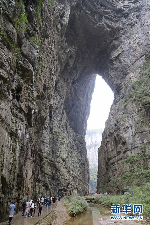 游客在天生三橋景區(qū)內(nèi)的青龍橋景點(diǎn)游覽(3月27日攝)。 隨著天氣轉(zhuǎn)暖,重慶武隆天生三橋景區(qū)風(fēng)景如畫,氣勢(shì)磅礴的天生石橋和綠意盎然的山林相映成趣,吸引眾多游客前來(lái)踏春賞景。 新華社記者劉潺攝