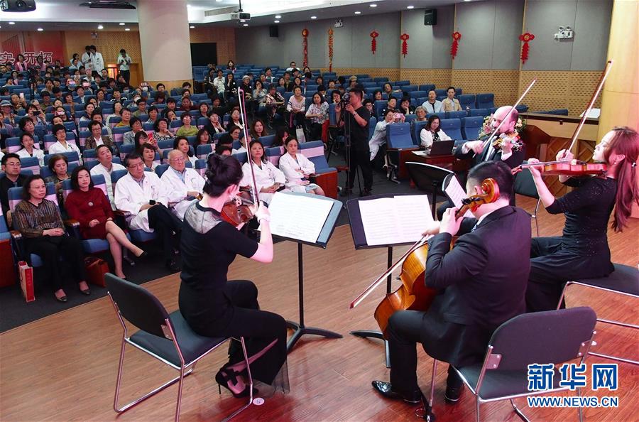 4月25日,上海交響樂團(tuán)的藝術(shù)家在復(fù)旦大學(xué)附屬腫瘤醫(yī)院為患者和醫(yī)護(hù)人員演奏。 當(dāng)日,第一場“全城交響·上交為你而來”音樂會在復(fù)旦大學(xué)附屬腫瘤醫(yī)院報告廳奏響,為患者及醫(yī)護(hù)人員獻(xiàn)上一場專屬音樂會?!叭墙豁憽ど辖粸槟愣鴣怼笔巧虾=豁憳穲F(tuán)2019年向全上海的機(jī)構(gòu)及個人開放的公益演出項目。 新華社記者 任瓏 攝