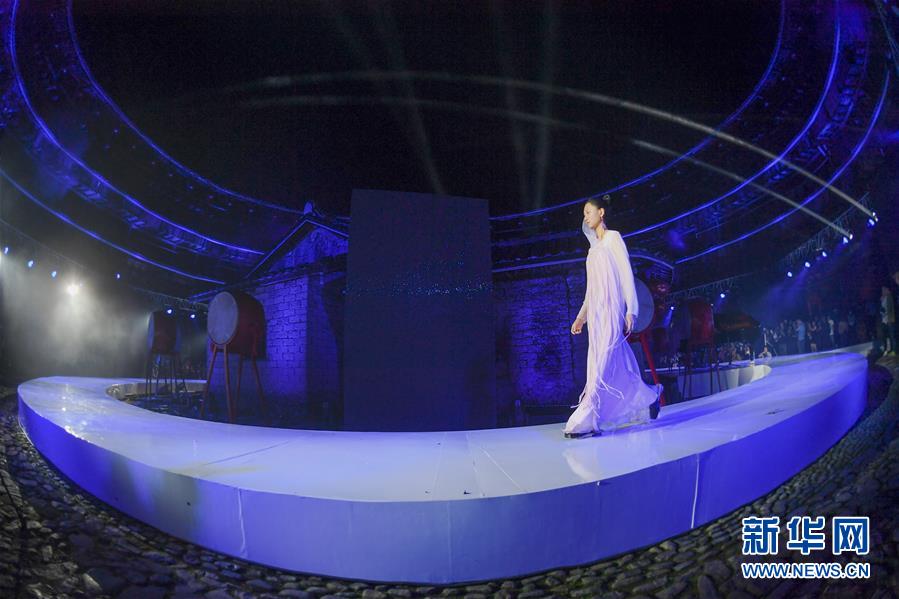 4月27日,模特在位于福建省南靖縣的土樓裕昌樓展示服飾。 當(dāng)日,土樓光語國際時(shí)尚大秀在福建省南靖縣的土樓裕昌樓內(nèi)舉行。這場(chǎng)融匯文化、時(shí)尚與旅游元素的大秀,通過傳統(tǒng)與時(shí)尚的有機(jī)融合,展現(xiàn)南靖土樓及文化的魅力和風(fēng)采。 新華社記者 宋為偉 攝