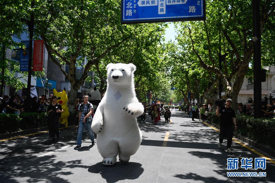 5月4日,演員裝扮成“北極熊”在巡游隊(duì)伍中表演。當(dāng)日,第十五屆中國(guó)國(guó)際動(dòng)漫節(jié)彩車巡游活動(dòng)在浙江杭州南宋御街中北創(chuàng)意街區(qū)舉行。巡游表演隊(duì)伍約500米長(zhǎng),由4輛大型動(dòng)漫彩車、1輛小火車及400多名演員組成。新華社記者 黃宗治 攝