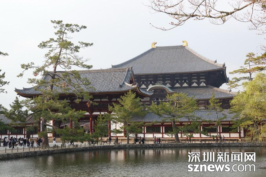 東大寺大佛殿正面寬度57米,深50米,為世界最大的木造建筑。殿內(nèi)放置著高15米以上的盧舍那佛像。中國(guó)唐代高僧鑒真和尚曾在這里設(shè)壇授戒。李仁奇 攝