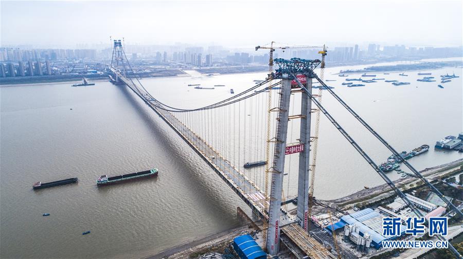 當(dāng)日,隨著最后一節(jié)鋼梁吊裝到位,由中鐵大橋院設(shè)計、中鐵大橋局施工的武漢楊泗港長江大橋順利合龍,標(biāo)志著這座世界最大跨度雙層公路懸索橋主體工程完工,進入橋面鋪裝階段。 武漢楊泗港長江大橋是武漢市內(nèi)建設(shè)的第十座長江大橋,也是長江上首座雙層公路大橋。 新華社記者 肖藝九 攝