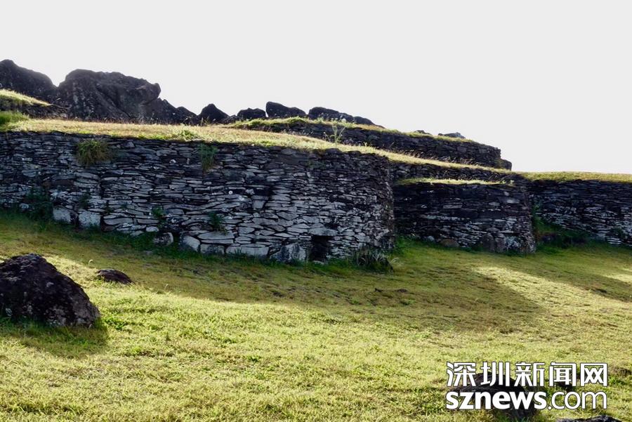 火山口邊沿有古代土著波利尼西亞人輪流值守家園的石砌地堡,他們當(dāng)時(shí)在此守望什么,防止入侵者亦或試圖發(fā)現(xiàn)新的島嶼?這是至今未解之謎。李仁奇 攝
