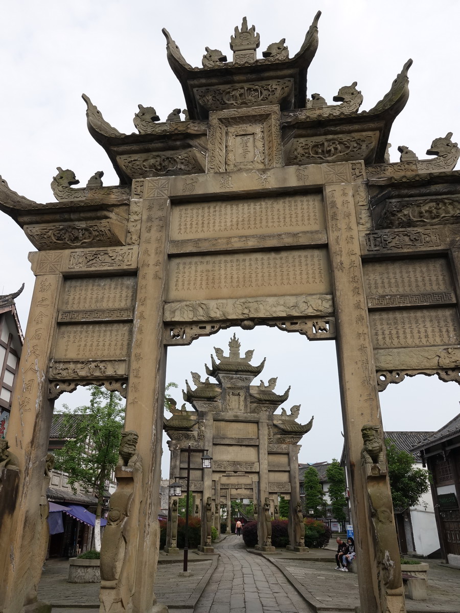 隆昌石牌坊大多為四柱三門三重檐五滴水石質(zhì)牌樓式建筑,平均面寬9米,通高11米,坊間距離最近處僅10余米。李仁奇 攝
