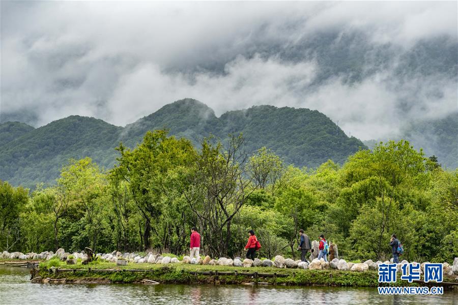游客在神農(nóng)架?chē)?guó)家公園大九湖游覽(2018年5月18日攝)。 新華社記者 杜華舉 攝