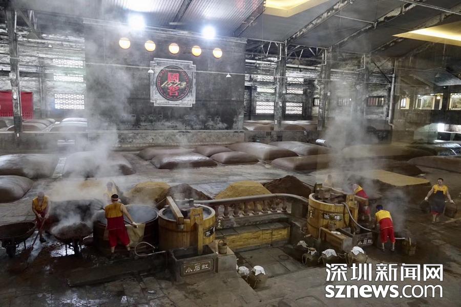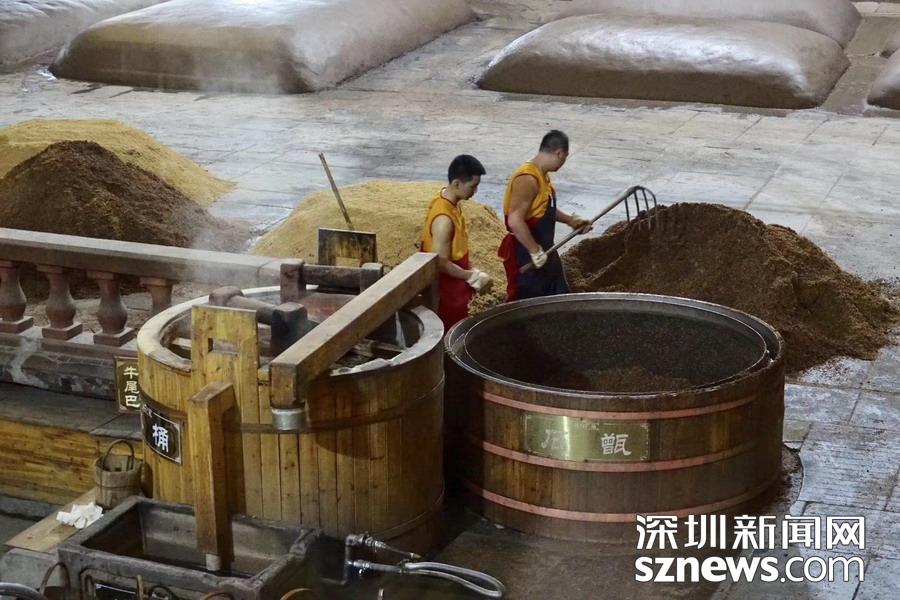 瀘州老窖酒是以泥窖為發(fā)酵容器,中高溫曲為產(chǎn)酒、生香劑,高梁等糧谷為釀酒原料,開放式操作生產(chǎn),多菌密閉共酵,續(xù)糟配料循環(huán),常壓固態(tài)甑桶蒸餾、精心陳釀勾兌等工藝釀制的白酒,以己酸乙醇為主體香味物質(zhì)?!盀o州老窖酒傳統(tǒng)釀造技藝”由大曲制造、原酒釀造、原酒陳釀、勾兌嘗評(píng)等多方面的技藝。李仁奇 攝