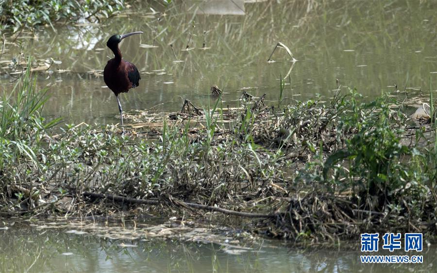 5月21日,一只彩鹮在漢江濕地公園里棲息。 近日,國家二級保護動物彩鹮現身陜西省漢中市漢江濕地公園濂水河與漢江交匯處。 據陜西師范大學生命科學院教授于曉平介紹,彩鹮在世界上的分布比朱鹮還要少,這幾年在云南發(fā)現得多一些,這3只彩鹮現身漢江濂水河畔,是陜西首次發(fā)現彩鹮蹤跡。 據了解,彩鹮是國家二級保護動物,屬鵜形目鹮科,體羽大部為青銅栗色,是珍稀鳥類朱鹮的“近親”,體型比朱鹮略小。 新華社記者陶明攝
