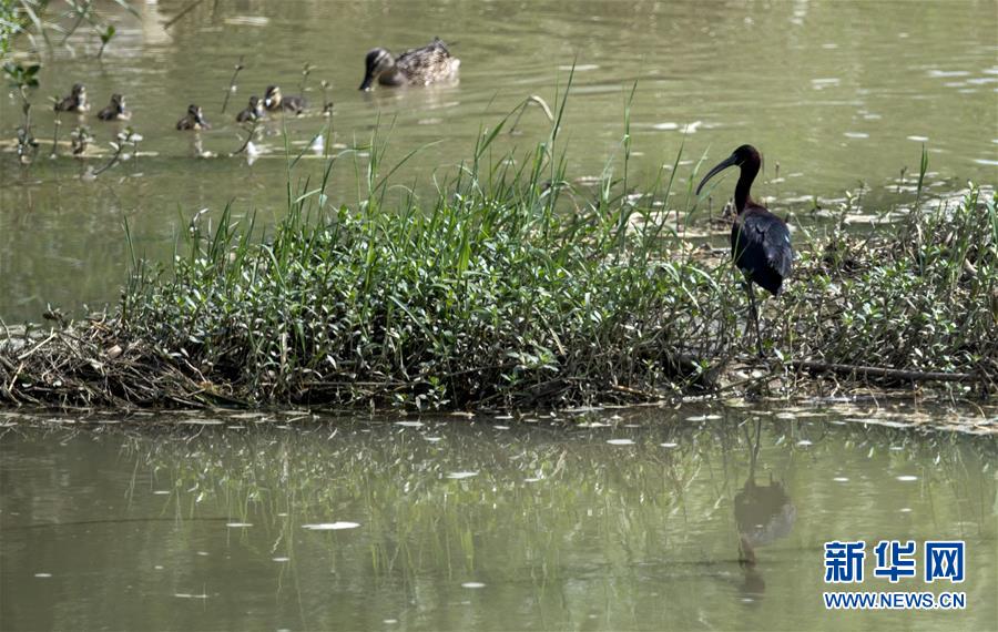 5月21日,一群野鴨從棲息在漢江濕地公園里的一只彩鹮身邊游過。 近日,國家二級保護動物彩鹮現身陜西省漢中市漢江濕地公園濂水河與漢江交匯處。 據陜西師范大學生命科學院教授于曉平介紹,彩鹮在世界上的分布比朱鹮還要少,這幾年在云南發(fā)現得多一些,這3只彩鹮現身漢江濂水河畔,是陜西首次發(fā)現彩鹮蹤跡。 據了解,彩鹮是國家二級保護動物,屬鵜形目鹮科,體羽大部為青銅栗色,是珍稀鳥類朱鹮的“近親”,體型比朱鹮略小。 新華社記者陶明攝