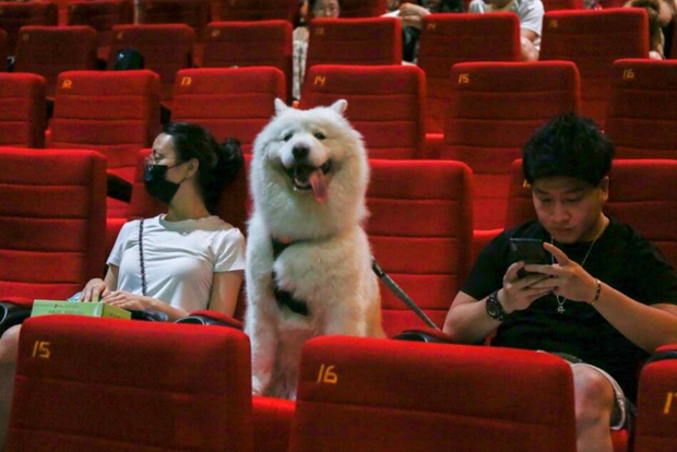 這只狗狗大概是第一次進(jìn)電影院