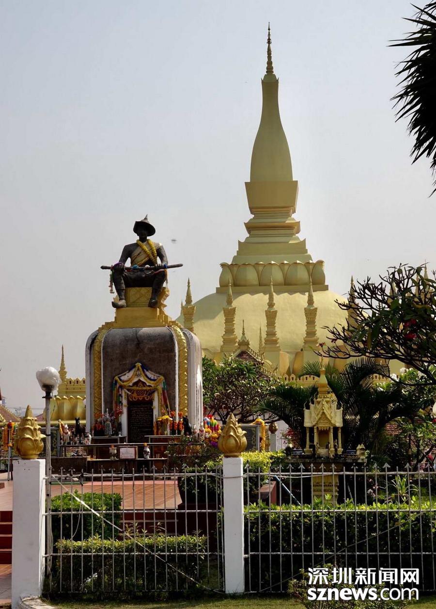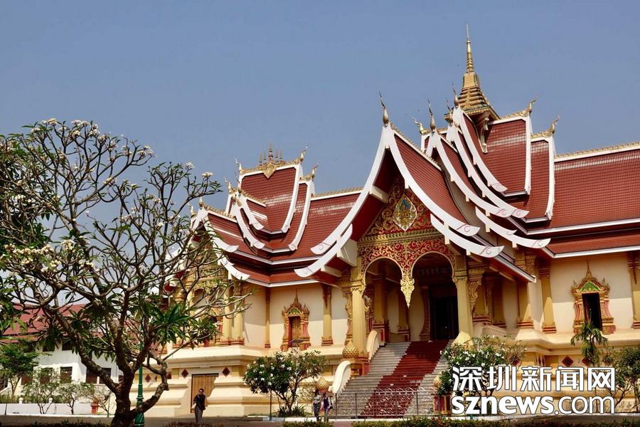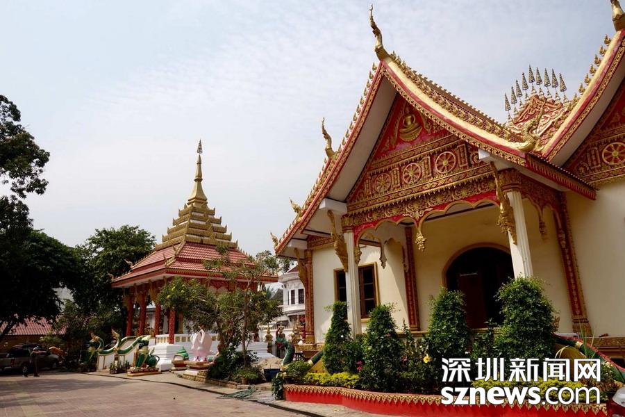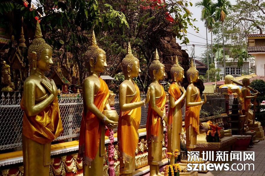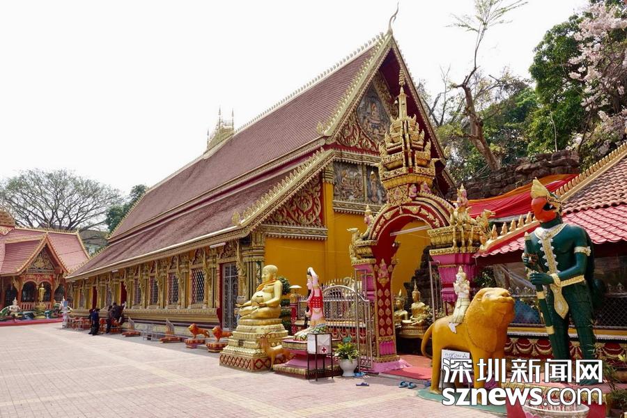 西蒙寺是萬象香火最旺盛的一個(gè)寺廟,又稱神城寺,每天有很多當(dāng)?shù)厝思坝慰蛠磉@里祈福,尤其受泰國(guó)游客鐘愛。李仁奇 攝